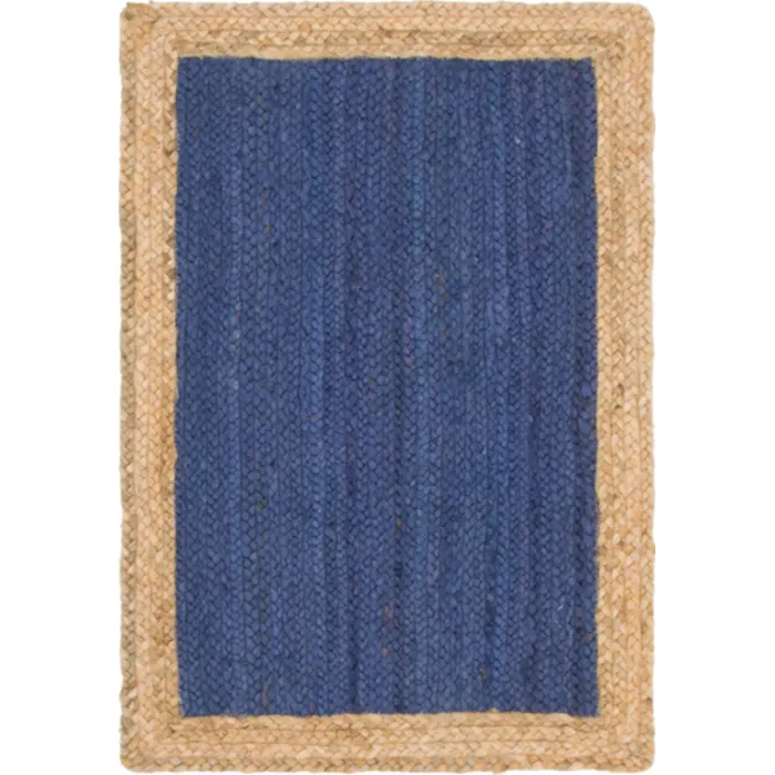 Unique Loom Goa Braided Jute Rug in Navy Blue Rectangular 3138931