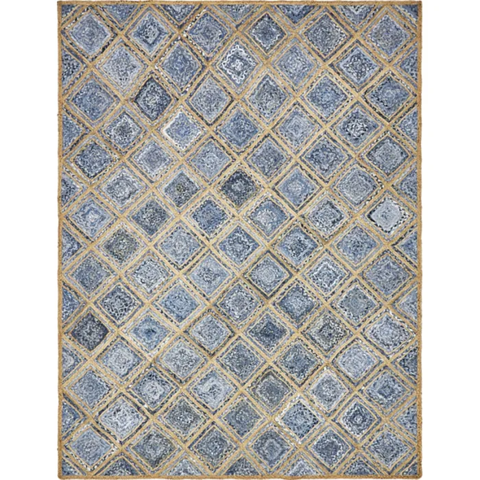 Unique Loom Bengal Braided Jute Rug in Blue Rectangular 3138953