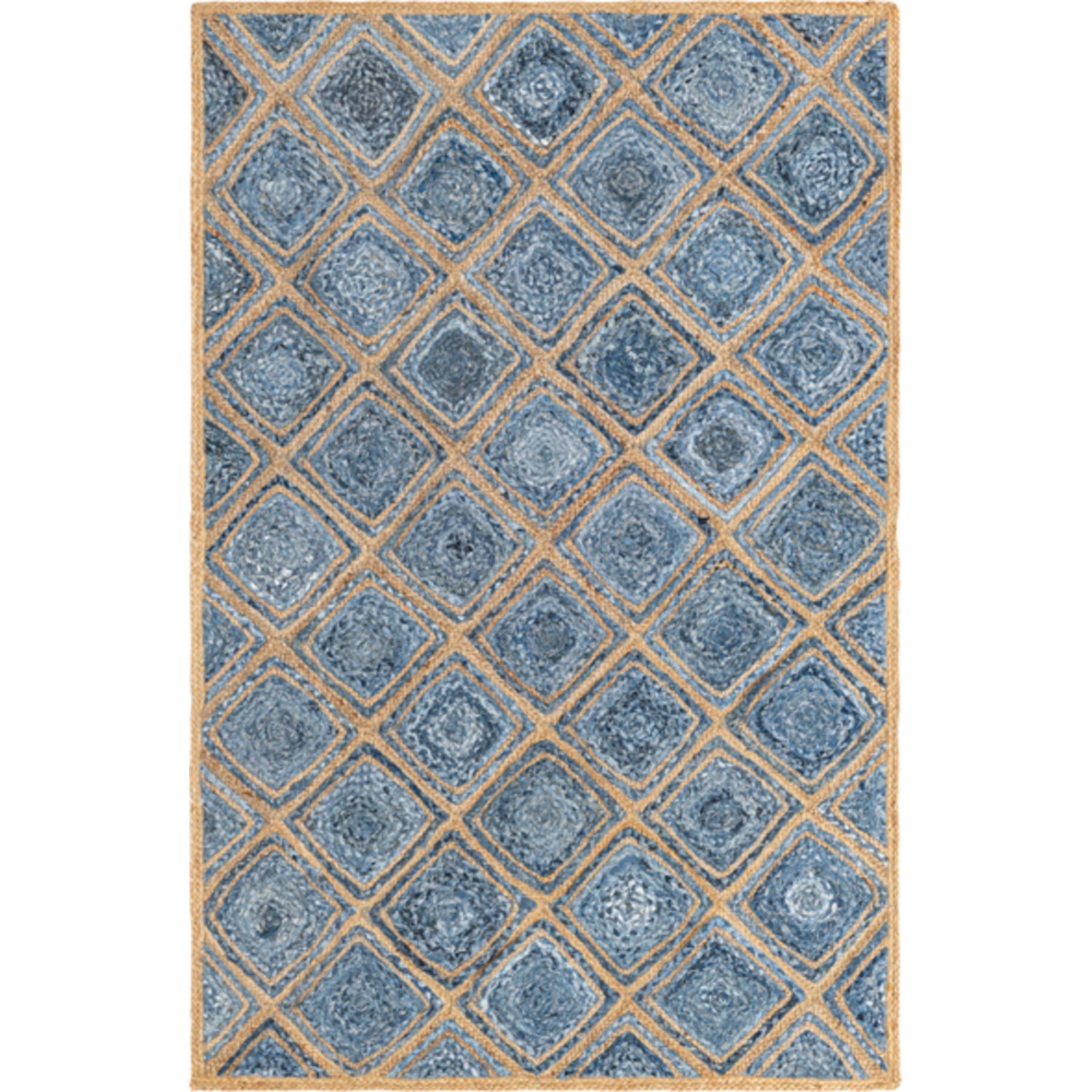 Unique Loom Bengal Braided Jute Rug in Blue Rectangular 3138955