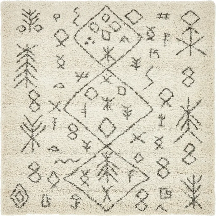 Unique Loom Tribal Rabat Shag Rug in Pure Ivory Square 3139379