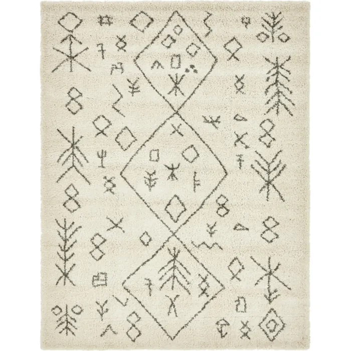 Unique Loom Tribal Rabat Shag Rug in Pure Ivory Rectangular 3139383