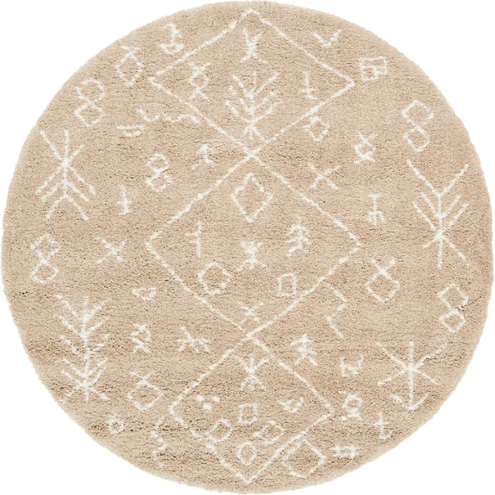 Unique Loom Tribal Rabat Shag Rug in Taupe Round 3139394