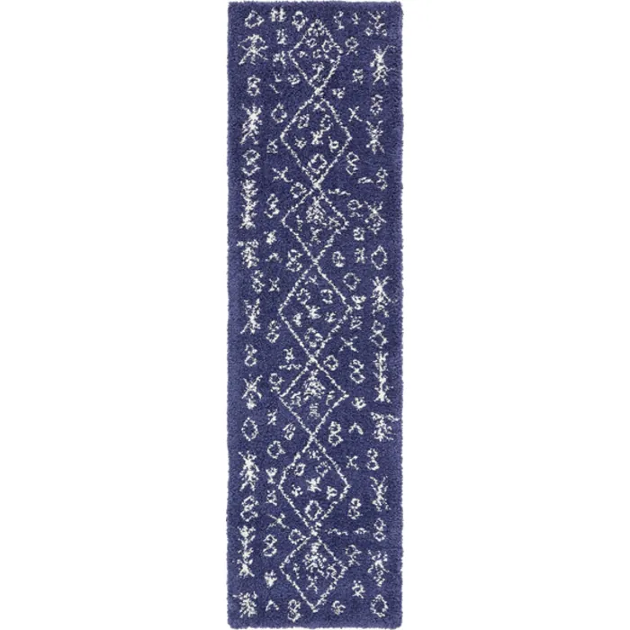 Unique Loom Tribal Rabat Shag Rug in Navy Blue Runner 3139401