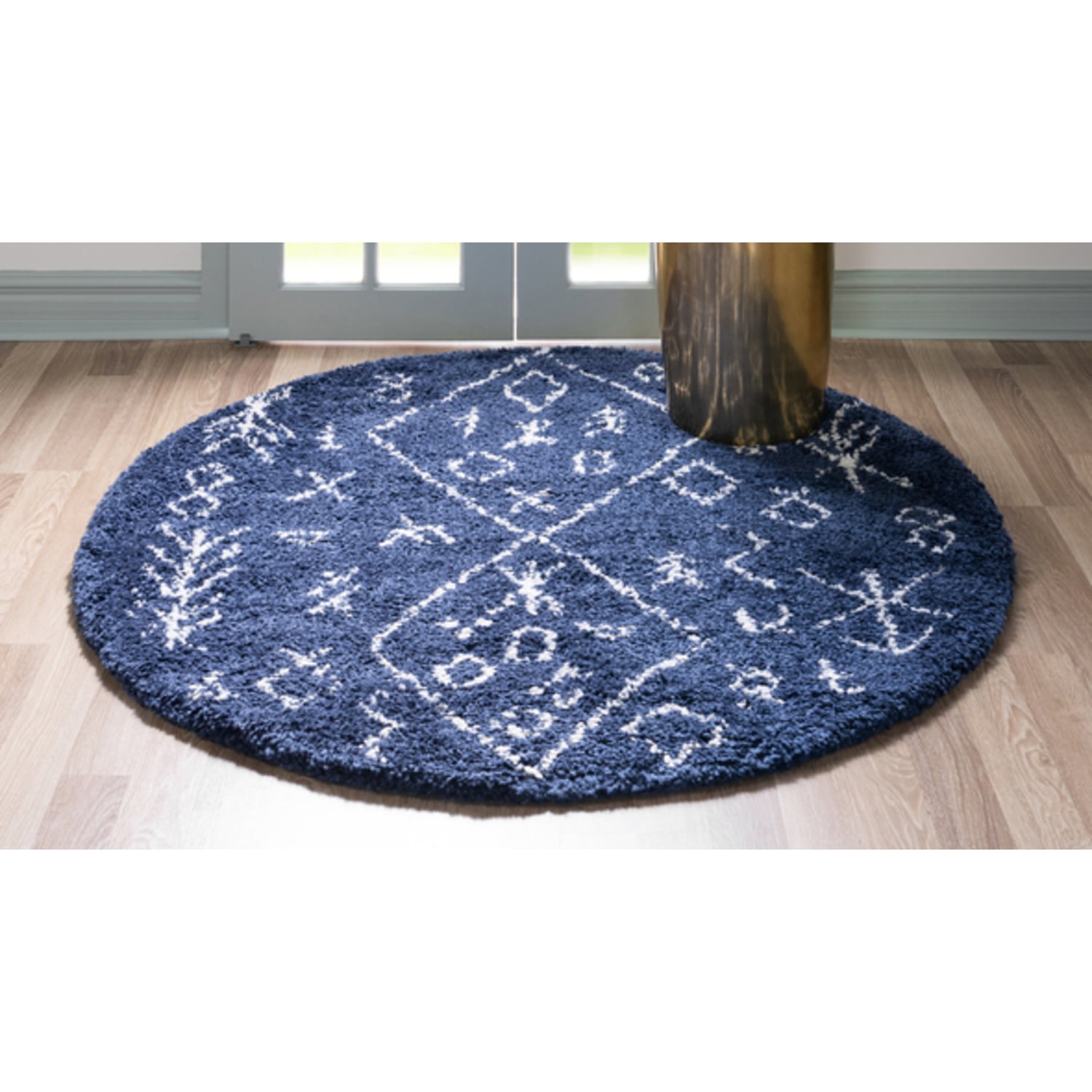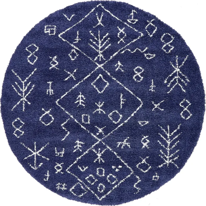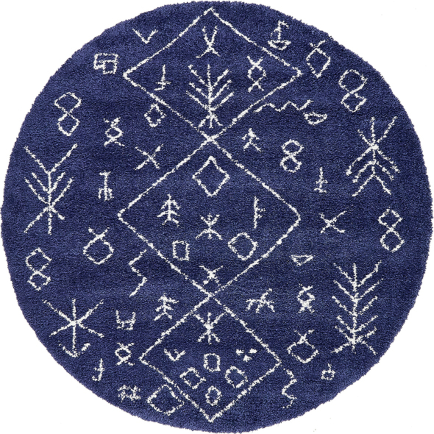 Unique Loom Tribal Rabat Shag Rug in Navy Blue Round 3139402