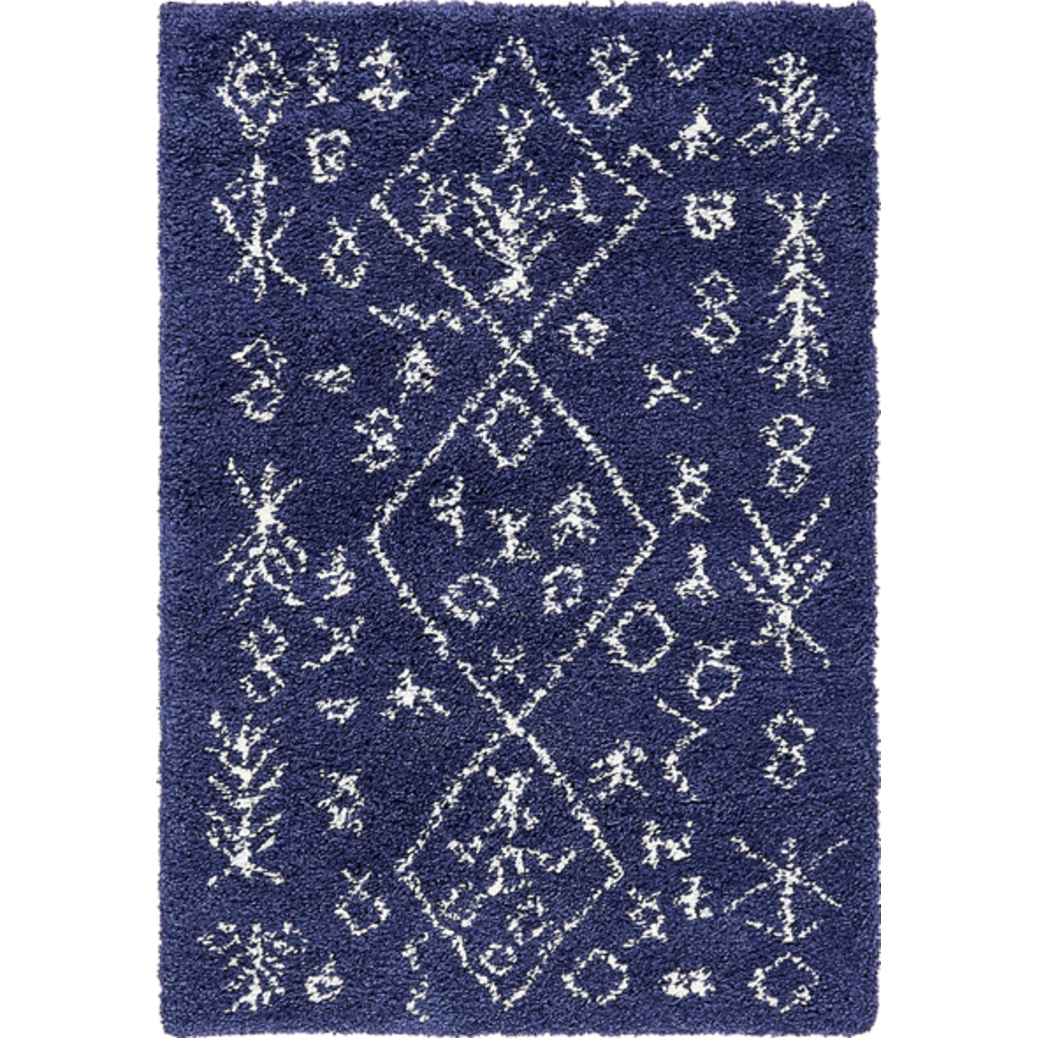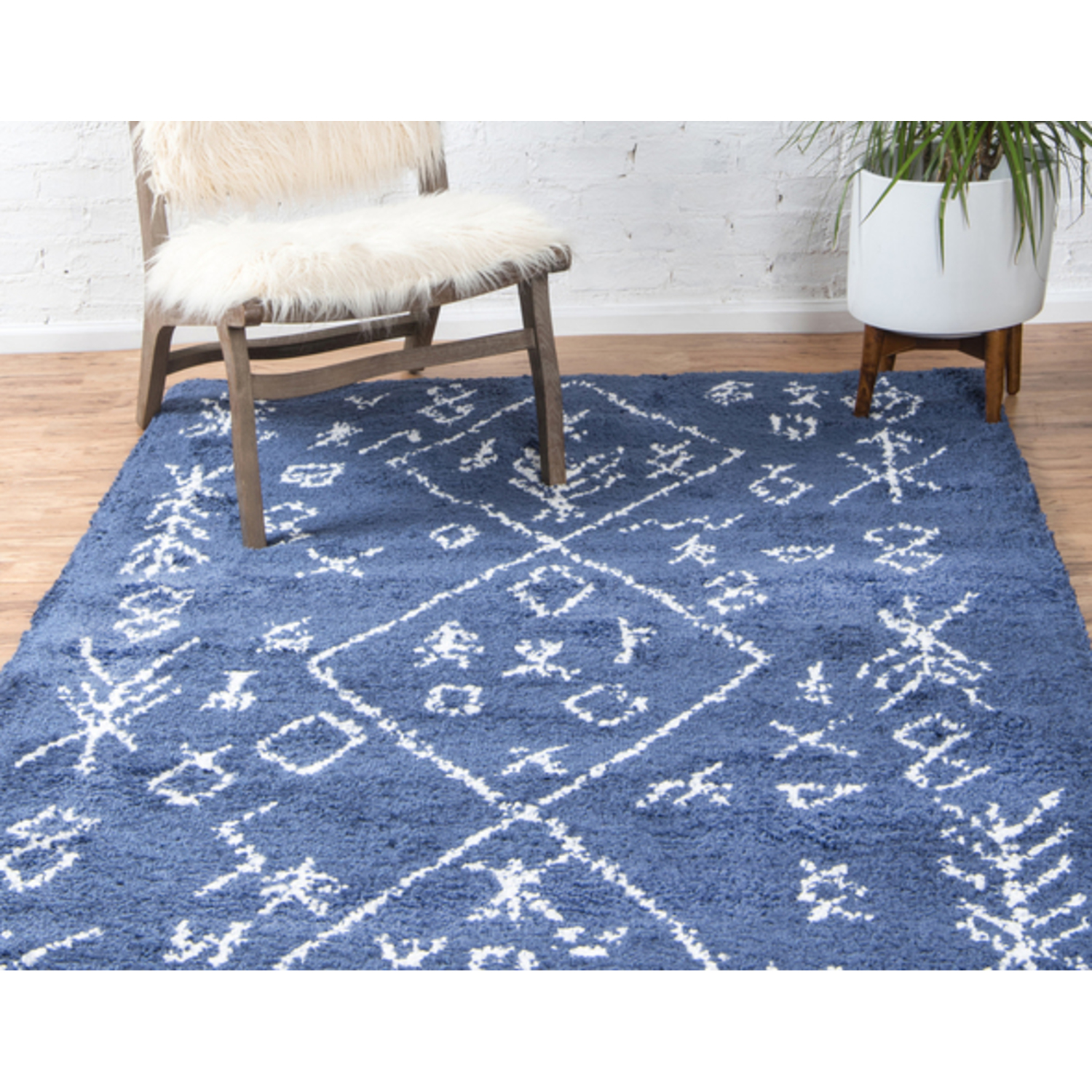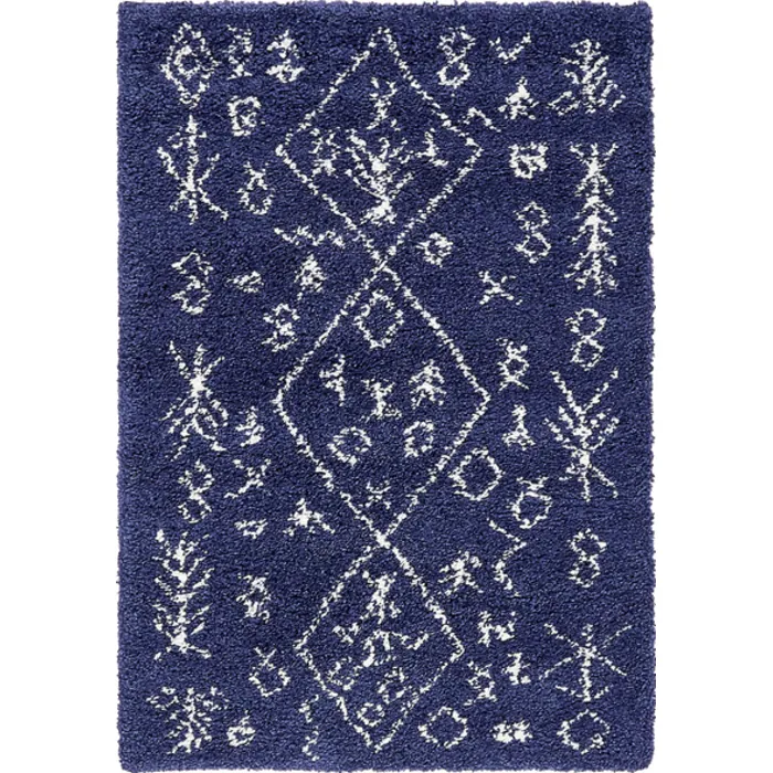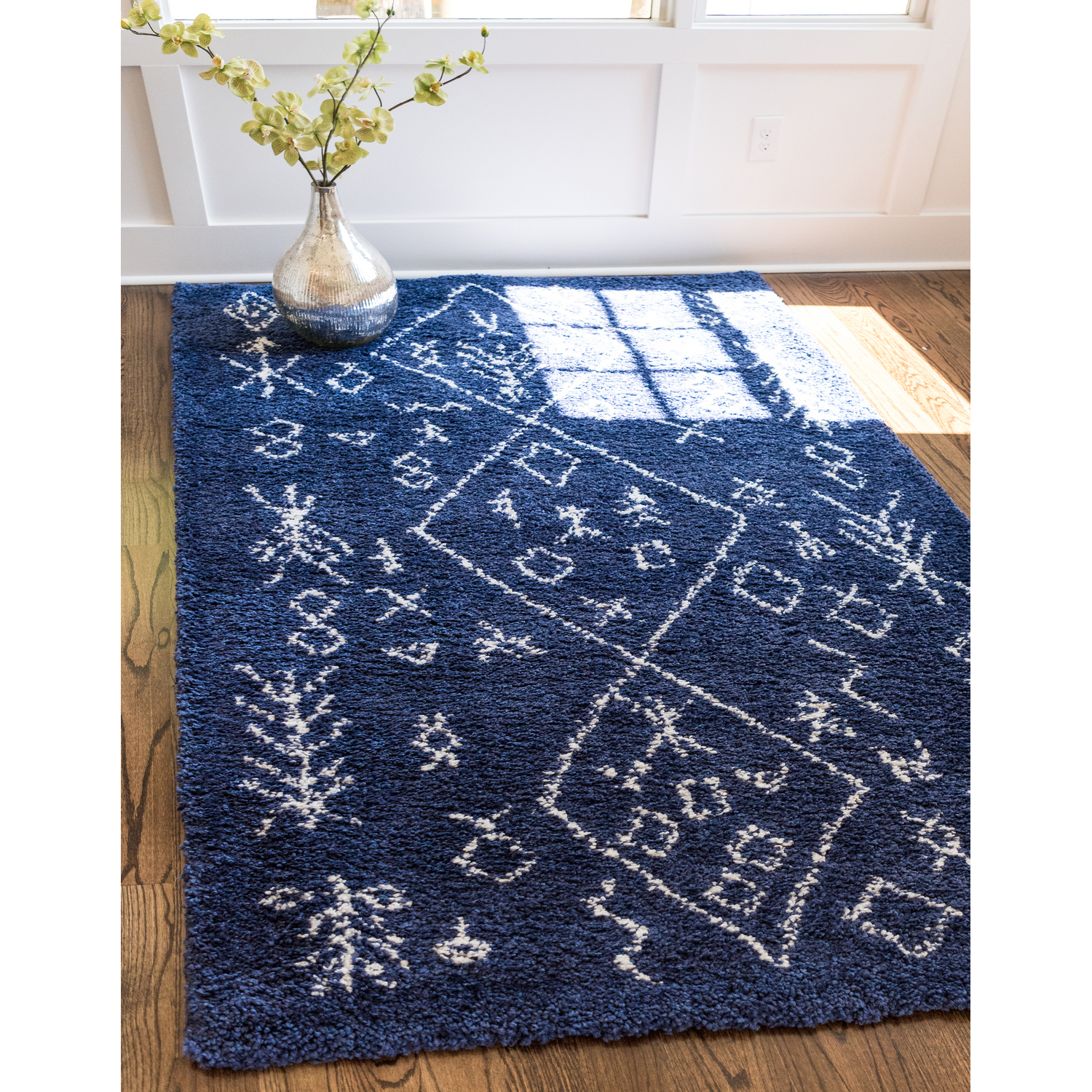 Unique Loom Tribal Rabat Shag Rug in Navy Blue Rectangular 3139404