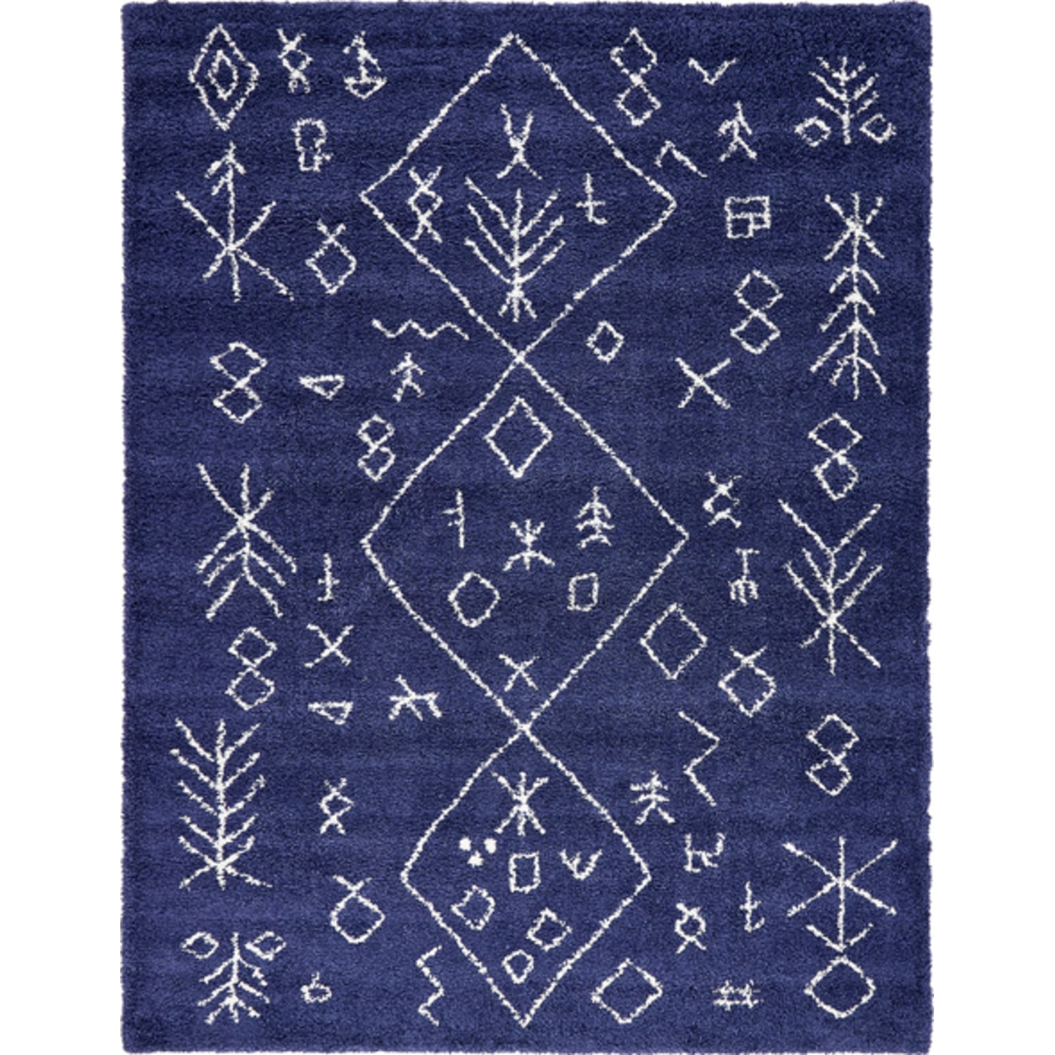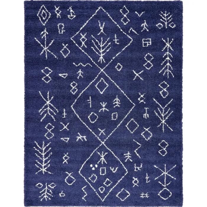 Unique Loom Tribal Rabat Shag Rug in Navy Blue Rectangular 3139407