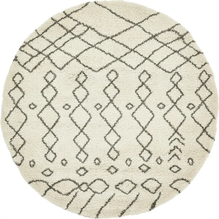 Unique Loom Geometric Rabat Shag Rug in Ivory Round 3139418