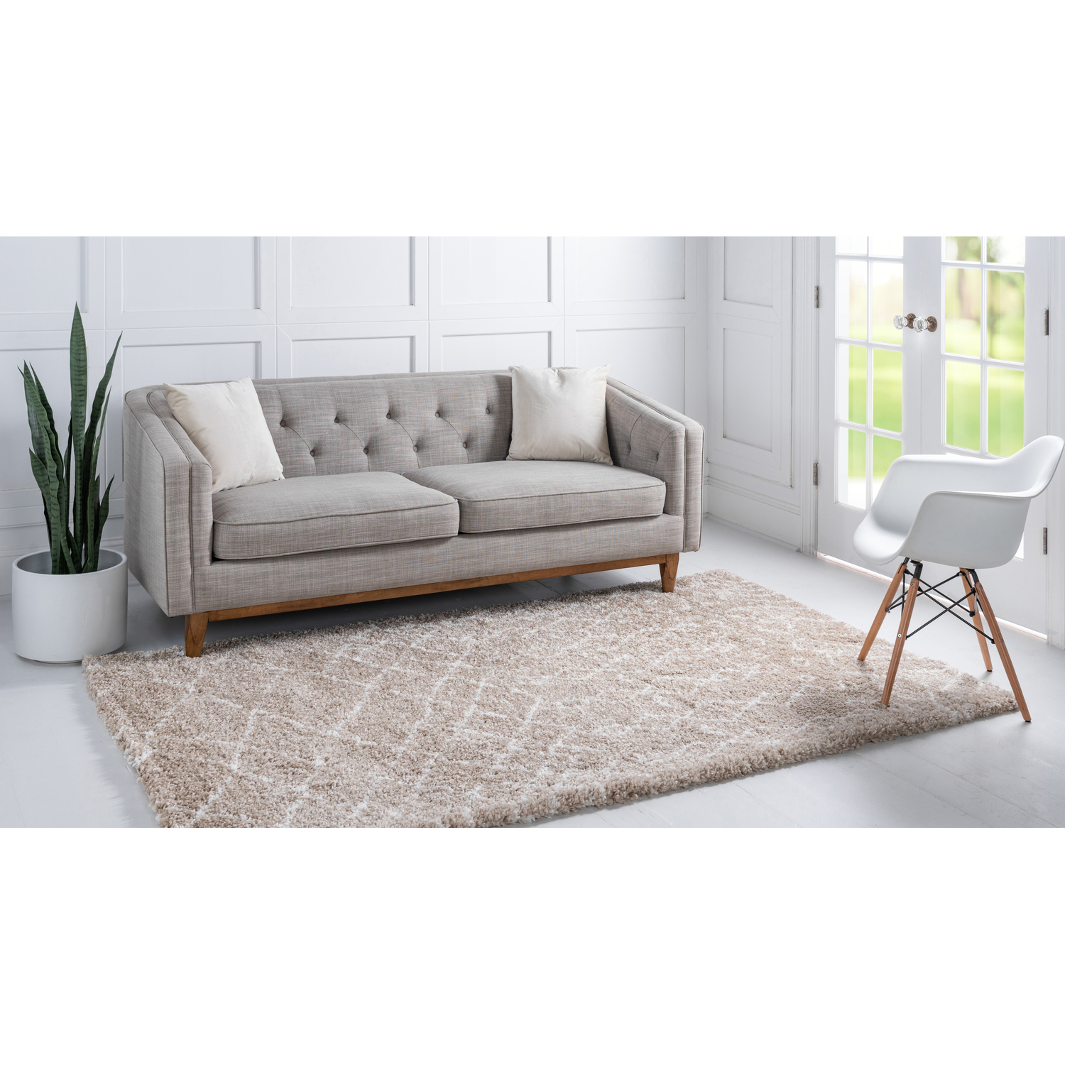 Unique Loom Geometric Rabat Shag Rug in Tan Rectangular 3139436