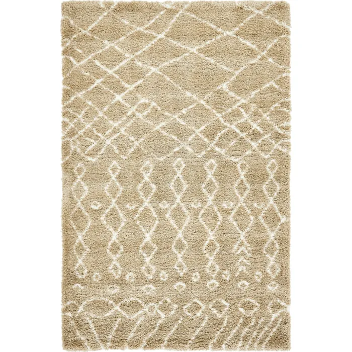 Unique Loom Geometric Rabat Shag Rug in Tan Rectangular 3139437
