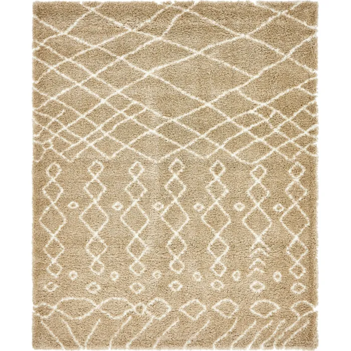 Unique Loom Geometric Rabat Shag Rug in Tan Rectangular 3139438