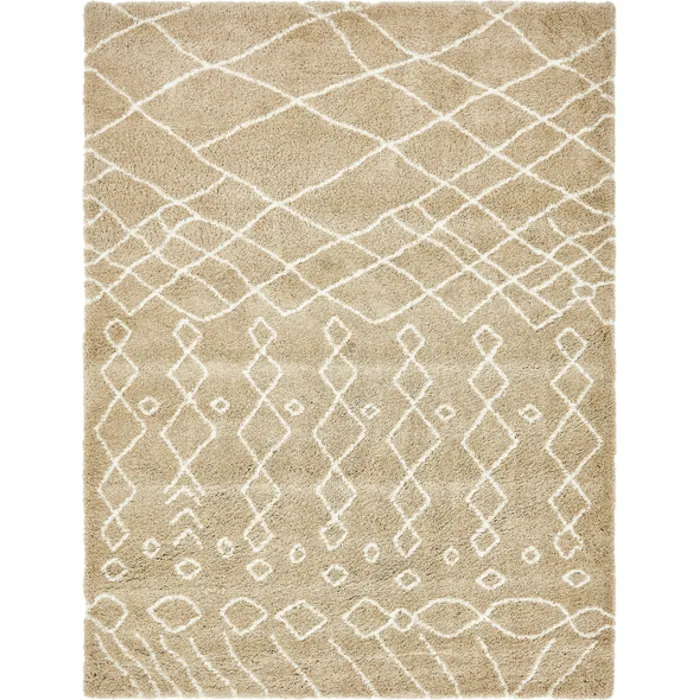 Unique Loom Geometric Rabat Shag Rug in Tan Rectangular 3139439