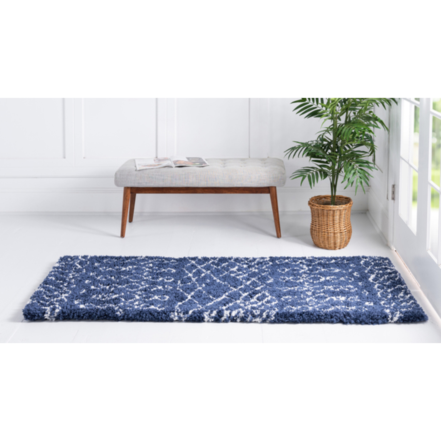 Unique Loom Geometric Rabat Shag Rug in Navy Blue Runner 3139440