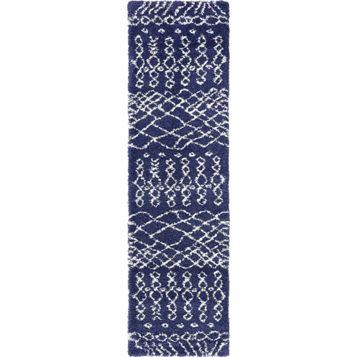 Unique Loom Geometric Rabat Shag Rug in Navy Blue Runner 3139441
