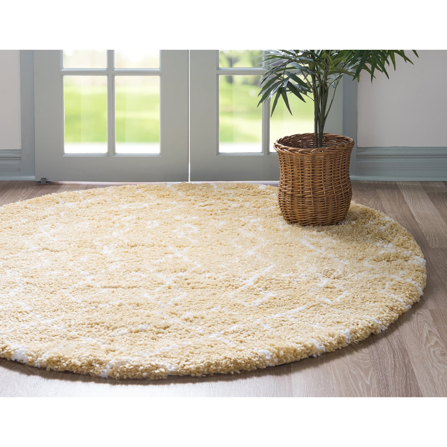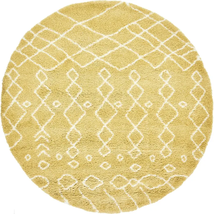 Unique Loom Geometric Rabat Shag Rug in Yellow Round 3139450