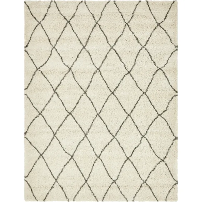 Unique Loom Trellis Rabat Shag Rug in Ivory Rectangular 3139463