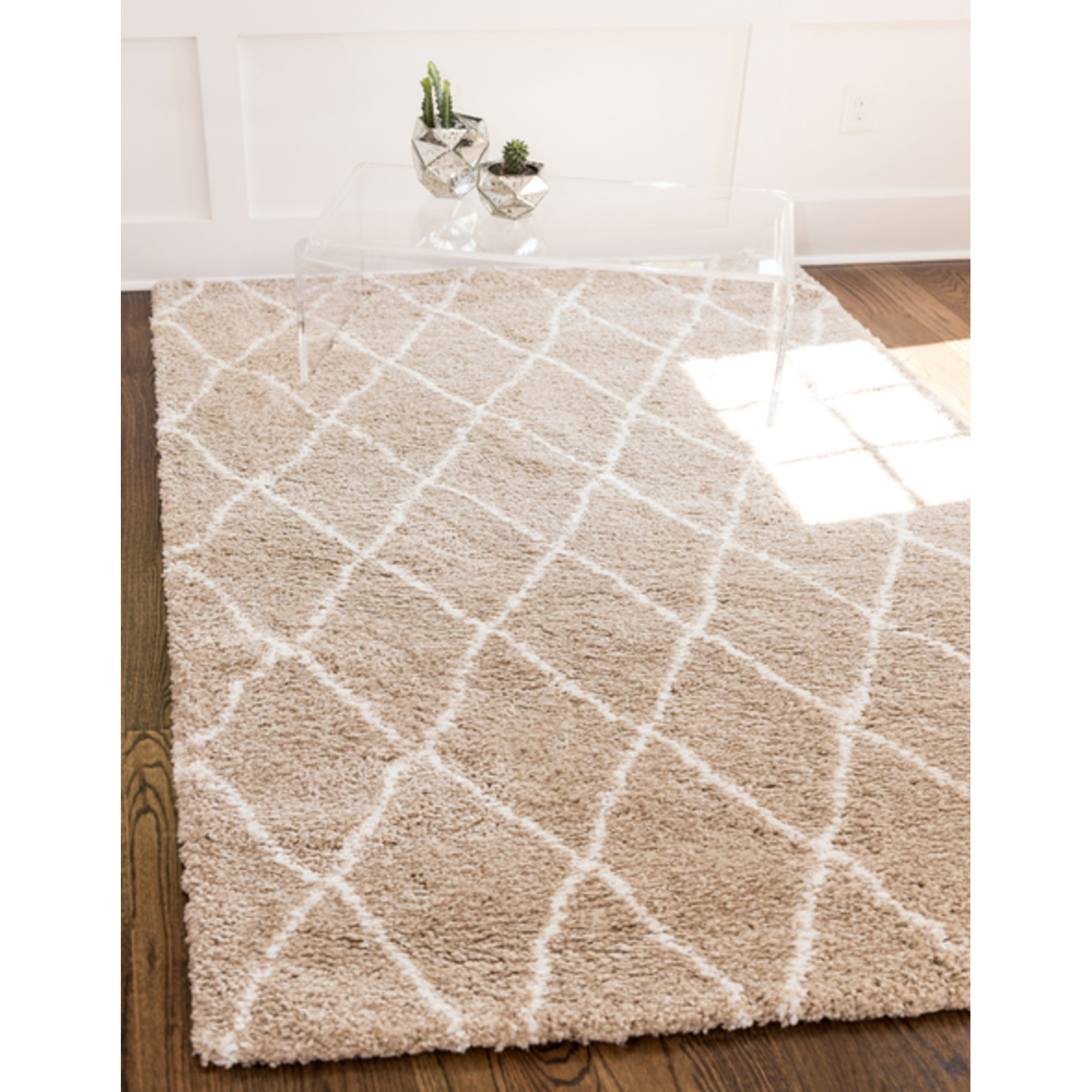 Unique Loom Trellis Rabat Shag Rug in Taupe Rectangular 3139476