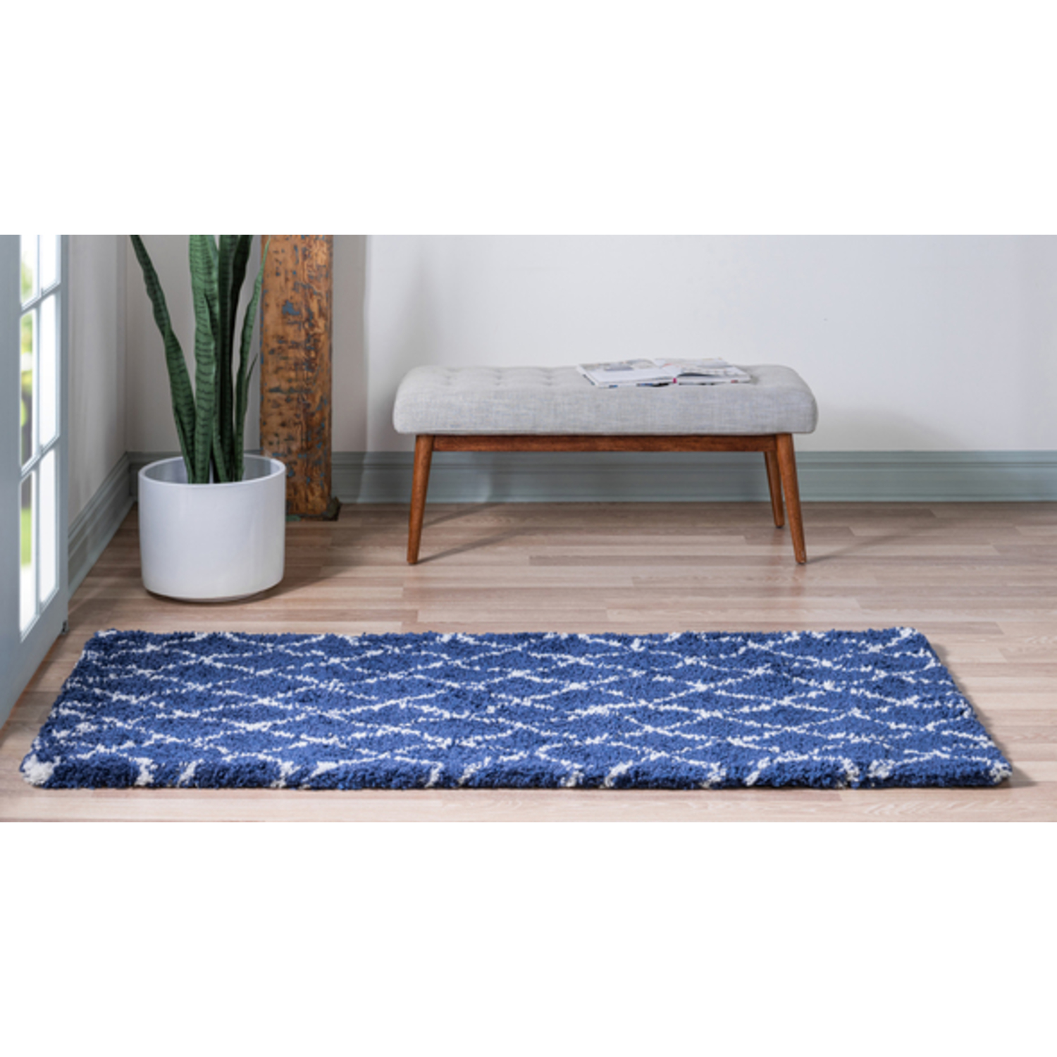 Unique Loom Trellis Rabat Shag Rug in Navy Blue Runner 3139480