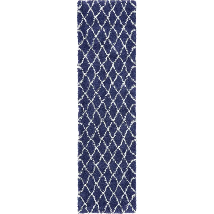 Unique Loom Trellis Rabat Shag Rug in Navy Blue Runner 3139481