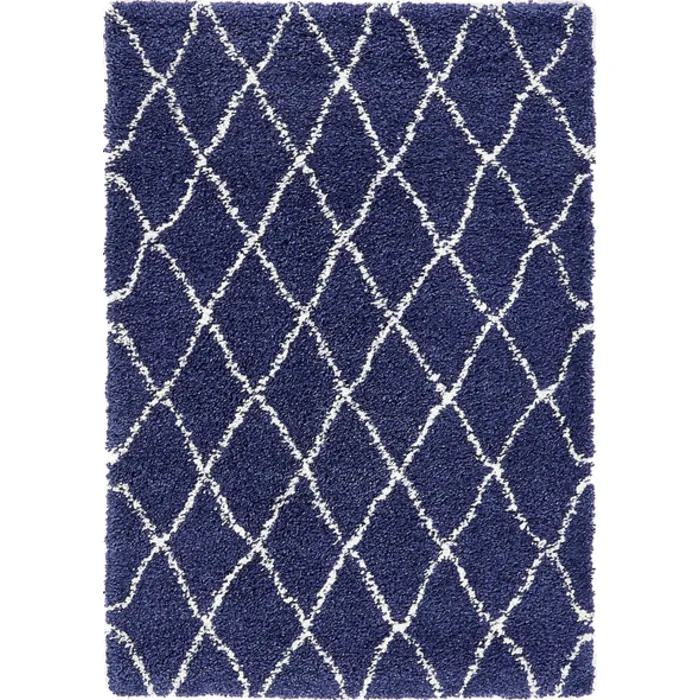 Unique Loom Trellis Rabat Shag Rug in Navy Blue Rectangular 3139484