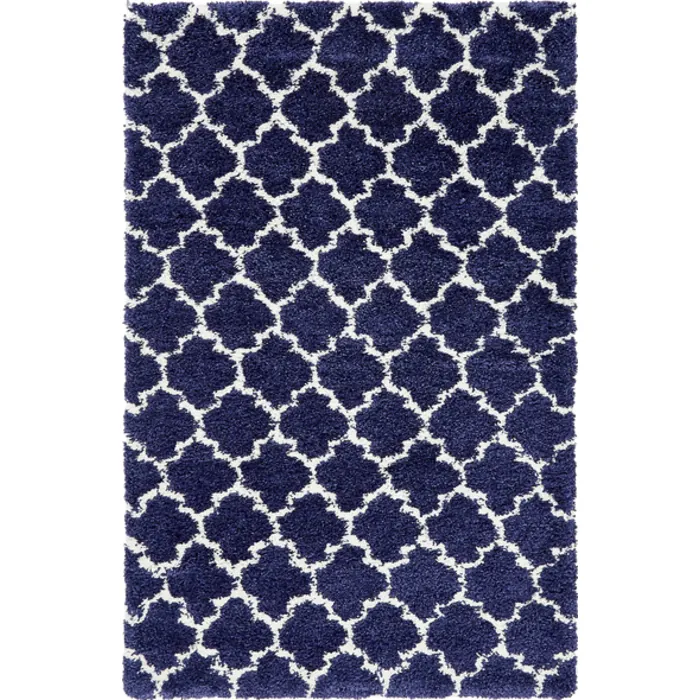 Unique Loom Marble Rabat Shag Rug in Navy Blue Rectangular 3139525