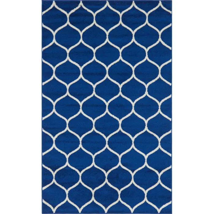 Unique Loom Rounded Trellis Frieze Rug in Navy Blue Rectangular 3140854
