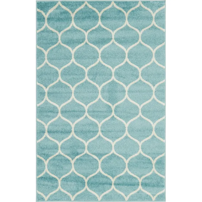 Unique Loom Rounded Trellis Frieze Rug in Light Blue Rectangular 3140871