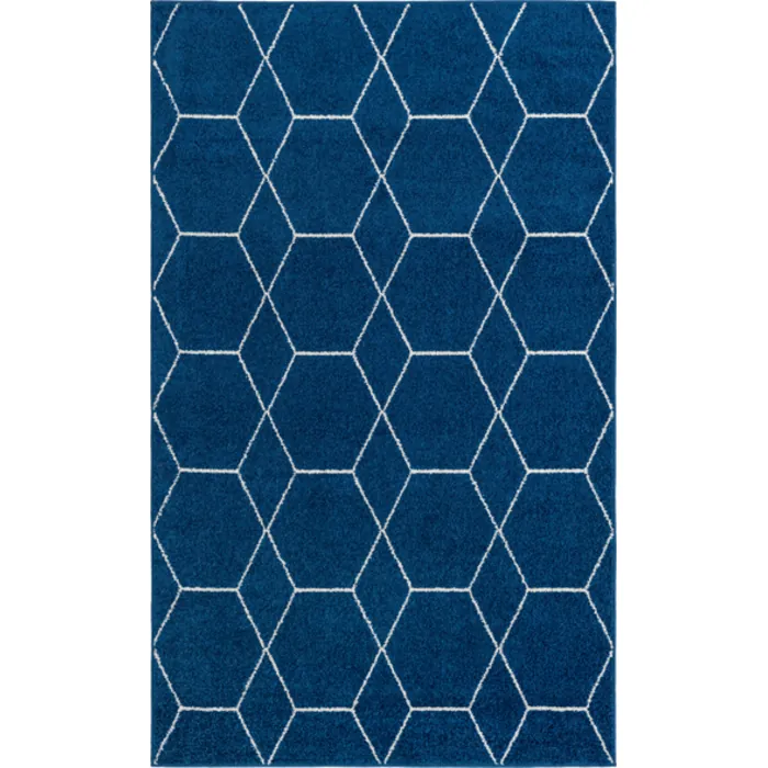Unique Loom Geometric Trellis Frieze Rug in Navy Blue Rectangular 3140882