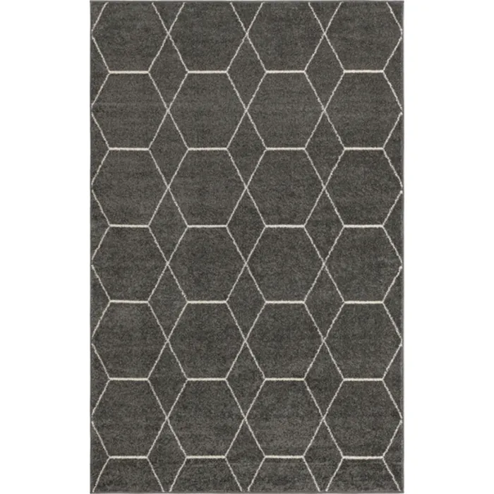 Unique Loom Geometric Trellis Frieze Rug in Dark Gray Rectangular 3140890