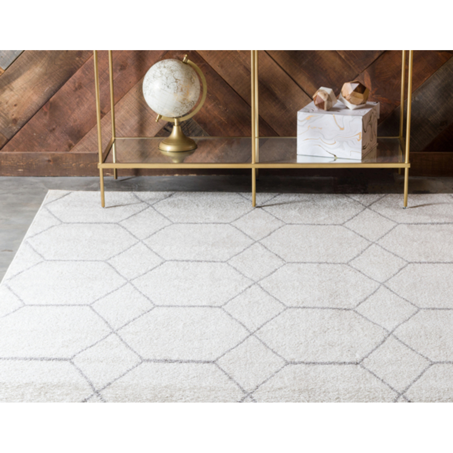 Unique Loom Geometric Trellis Frieze Rug in Ivory Rectangular 3140892