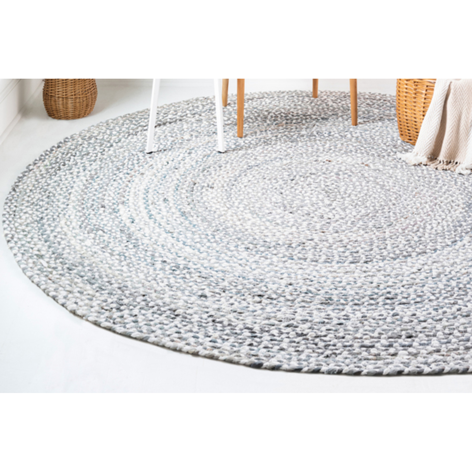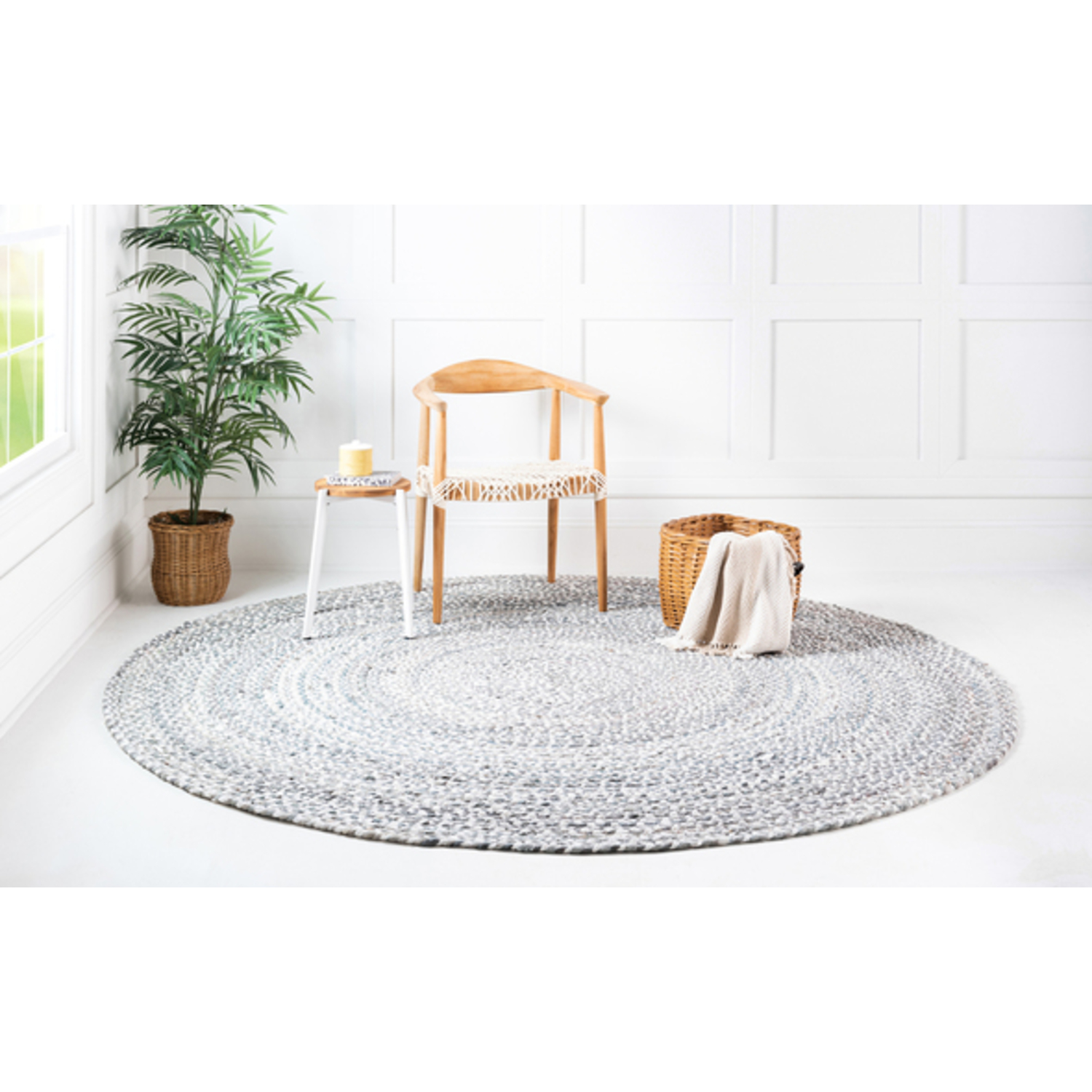 Unique Loom Braided Chindi Rug in Gray Round 3142722
