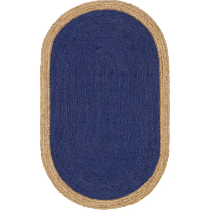 Unique Loom Goa Braided Jute Rug in Navy Blue Oval 3142775