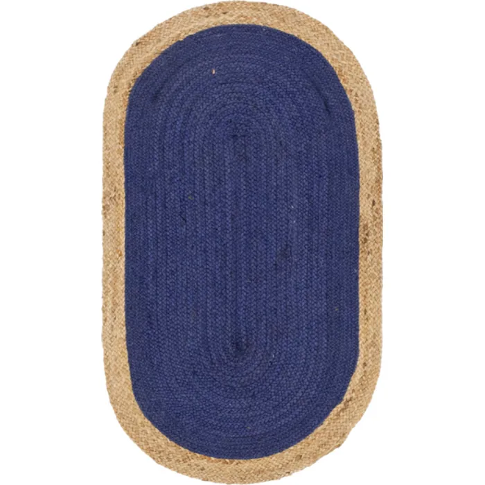 Unique Loom Goa Braided Jute Rug in Navy Blue Oval 3142776