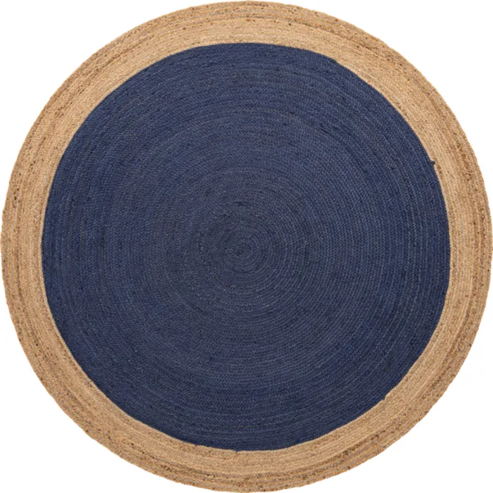 Unique Loom Goa Braided Jute Rug in Navy Blue Round 3142777