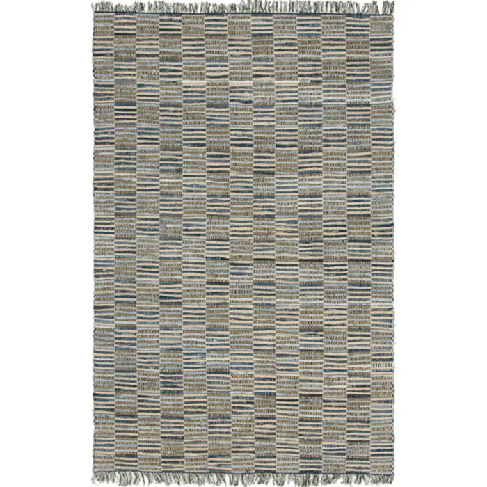 Unique Loom Checkered Chindi Jute Rug in Blue Rectangular 3142858