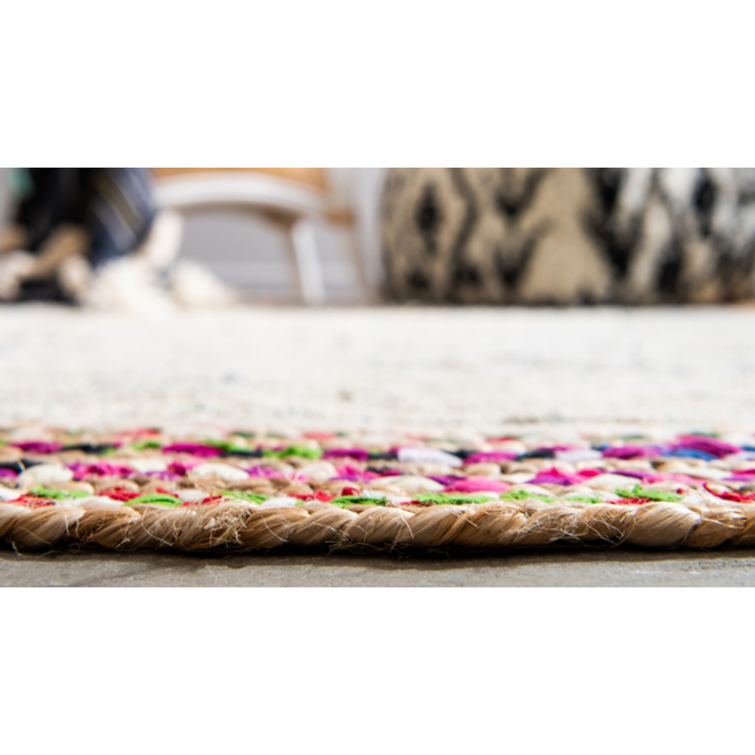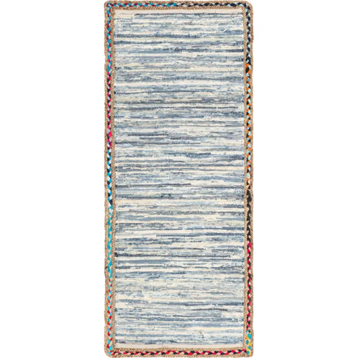 The Chindi Jute Collection combines the best of what nature has to offer. Hand woven and hand braided in India with organic cotton and jute, these all-natural rugs add a soft, earthy vibe to any space. Neutral beige and dark blue tones are easy to integrate with various styles and colors to create a no-stress, all-natural addition to any space.