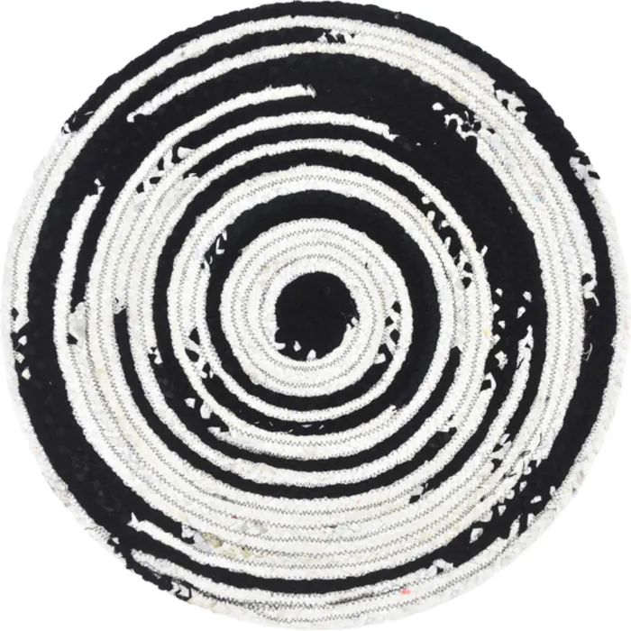 Unique Loom Braided Chindi Rug in Black/White Round 3142874