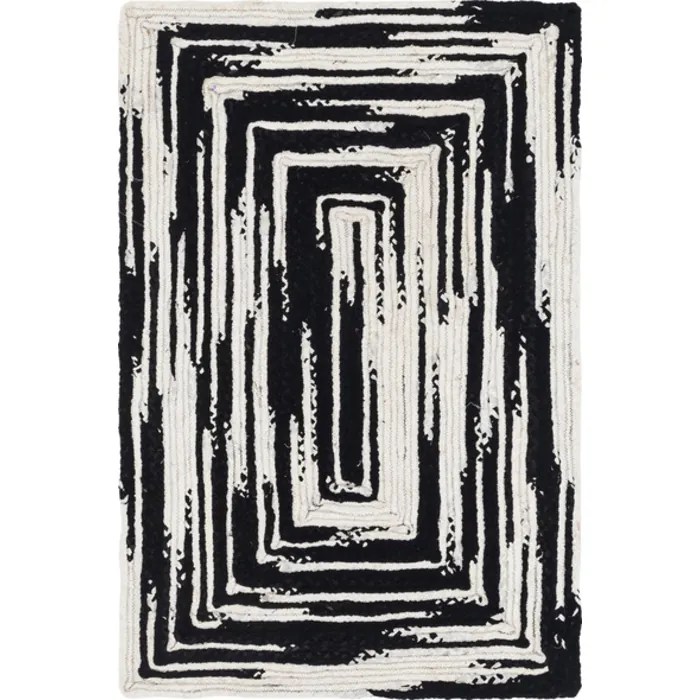 Unique Loom Braided Chindi Rug in Black/White Rectangular 3142879