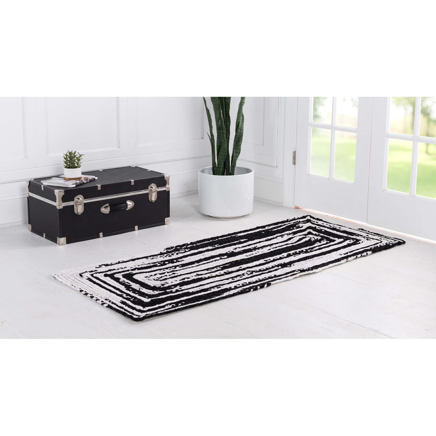 Unique Loom Braided Chindi Rug in Black/White Runner 3142881