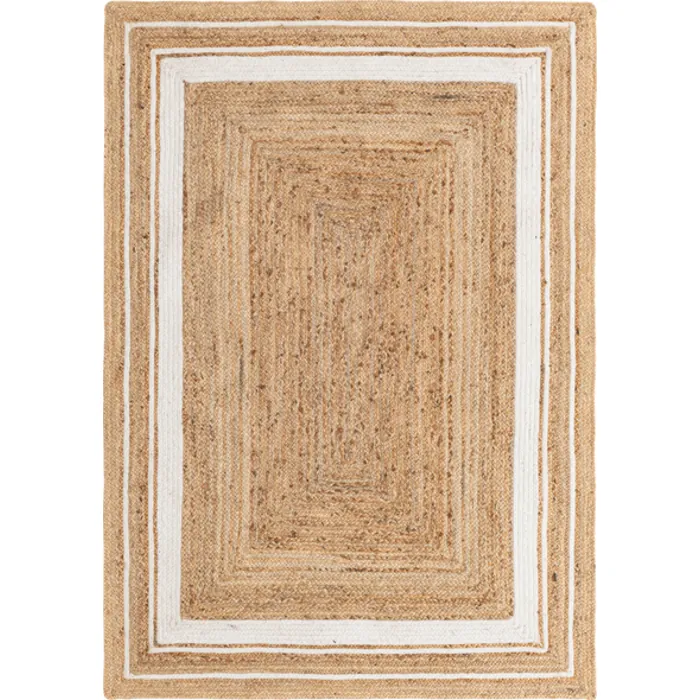 Unique Loom Gujarat Braided Jute Rug in Natural/Ivory Rectangular 3142887