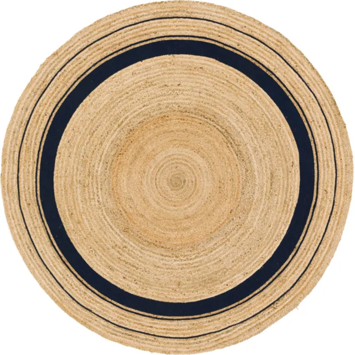 Unique Loom Gujarat Braided Jute Rug in Natural/Navy Blue Round 3142891