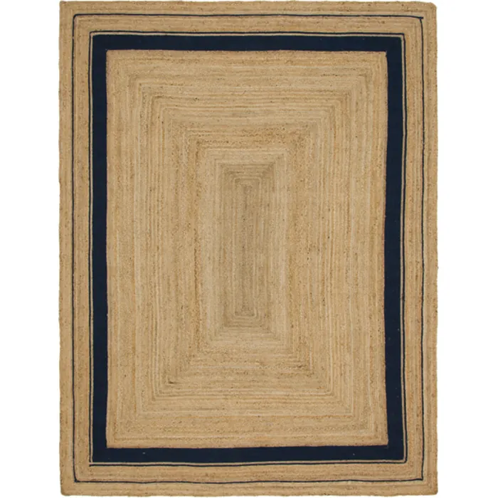 Unique Loom Gujarat Braided Jute Rug in Natural/Navy Blue Rectangular 3142893