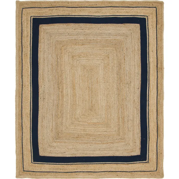 Unique Loom Gujarat Braided Jute Rug in Natural/Navy Blue Rectangular 3142894