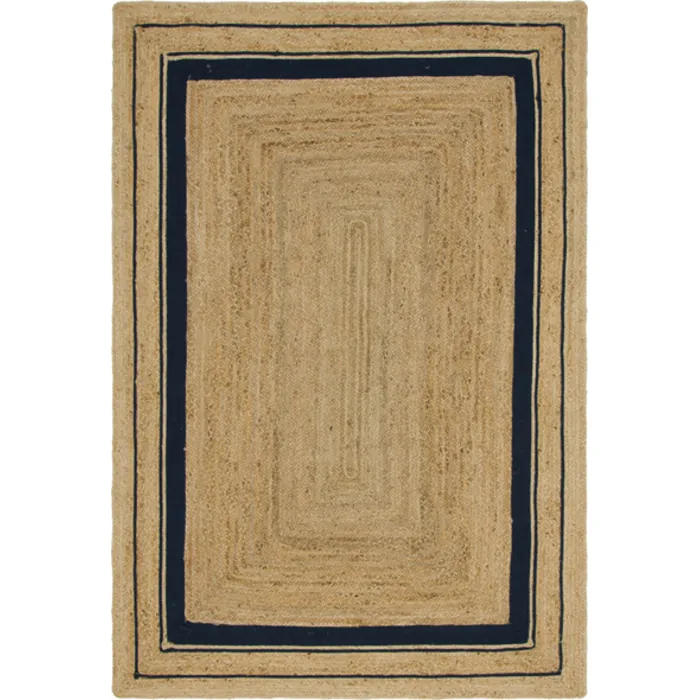 Unique Loom Gujarat Braided Jute Rug in Natural/Navy Blue Rectangular 3142895