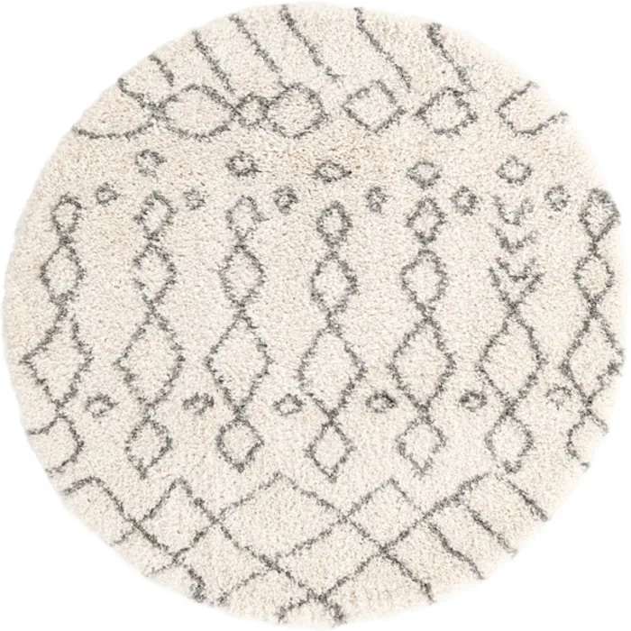 Unique Loom Geometric Rabat Shag Rug in Ivory Round 3144133