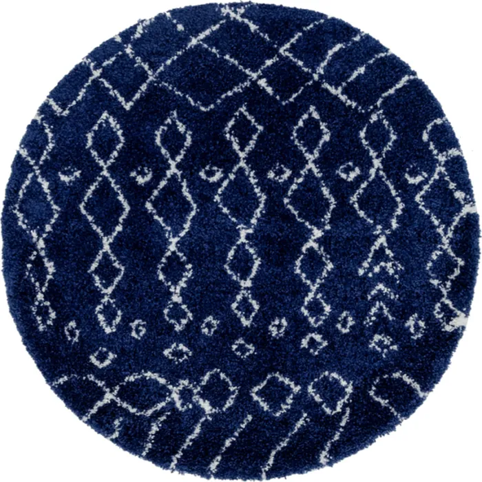 Unique Loom Geometric Rabat Shag Rug in Navy Blue Round 3144138