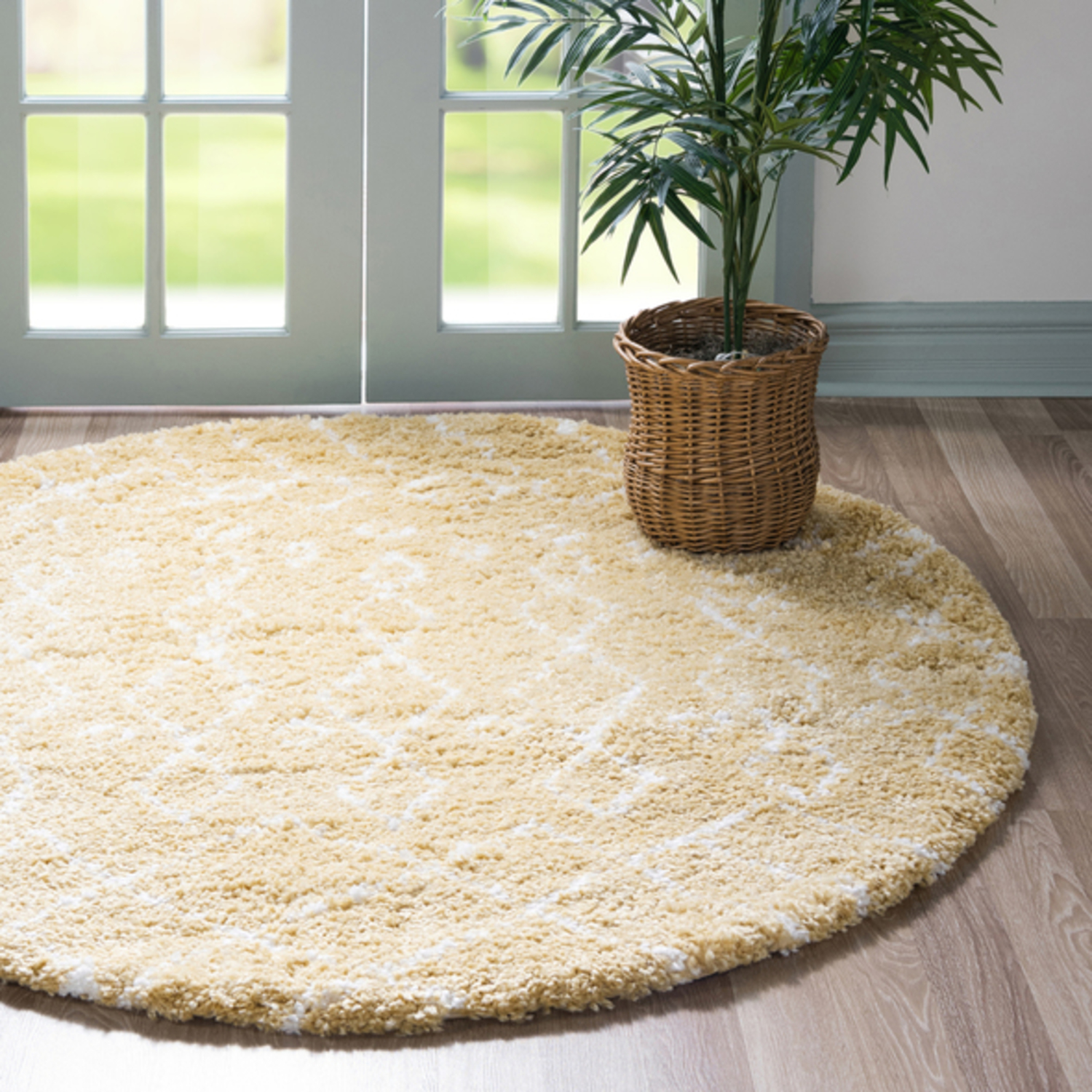 Unique Loom Geometric Rabat Shag Rug in Yellow Round 3144139