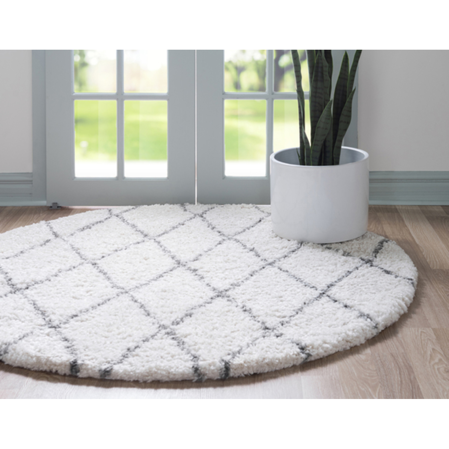Unique Loom Trellis Rabat Shag Rug in Ivory Round 3144140