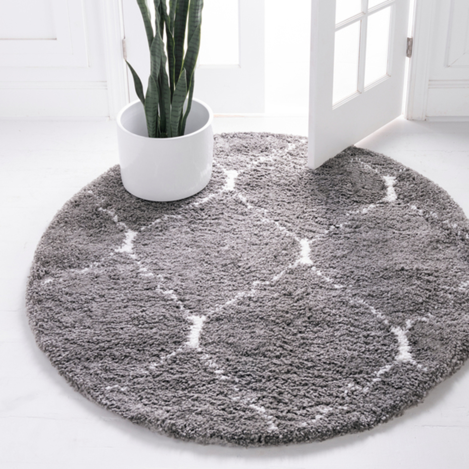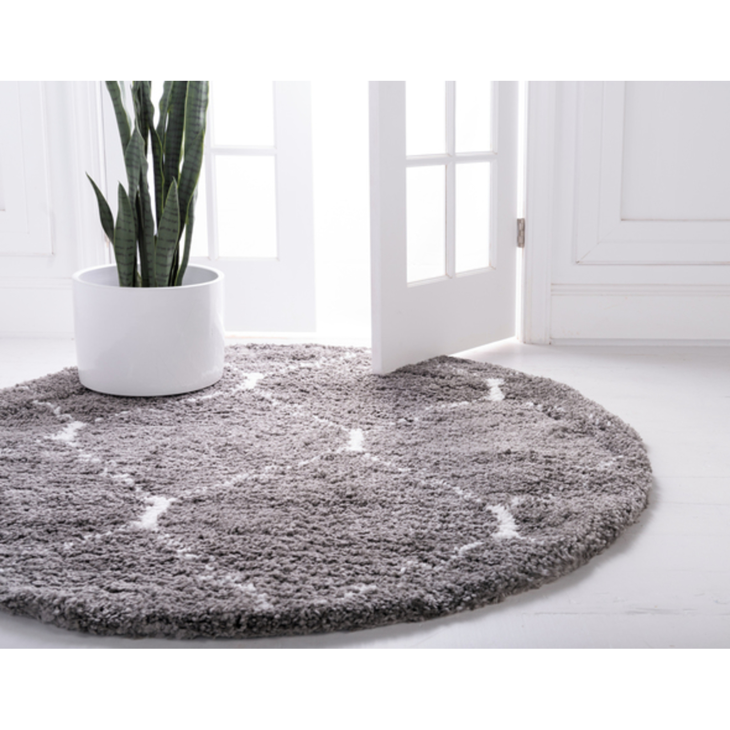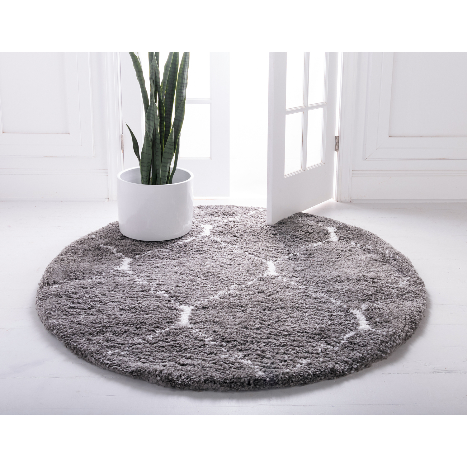 Unique Loom Fractured Rabat Shag Rug in Gray Round 3144335