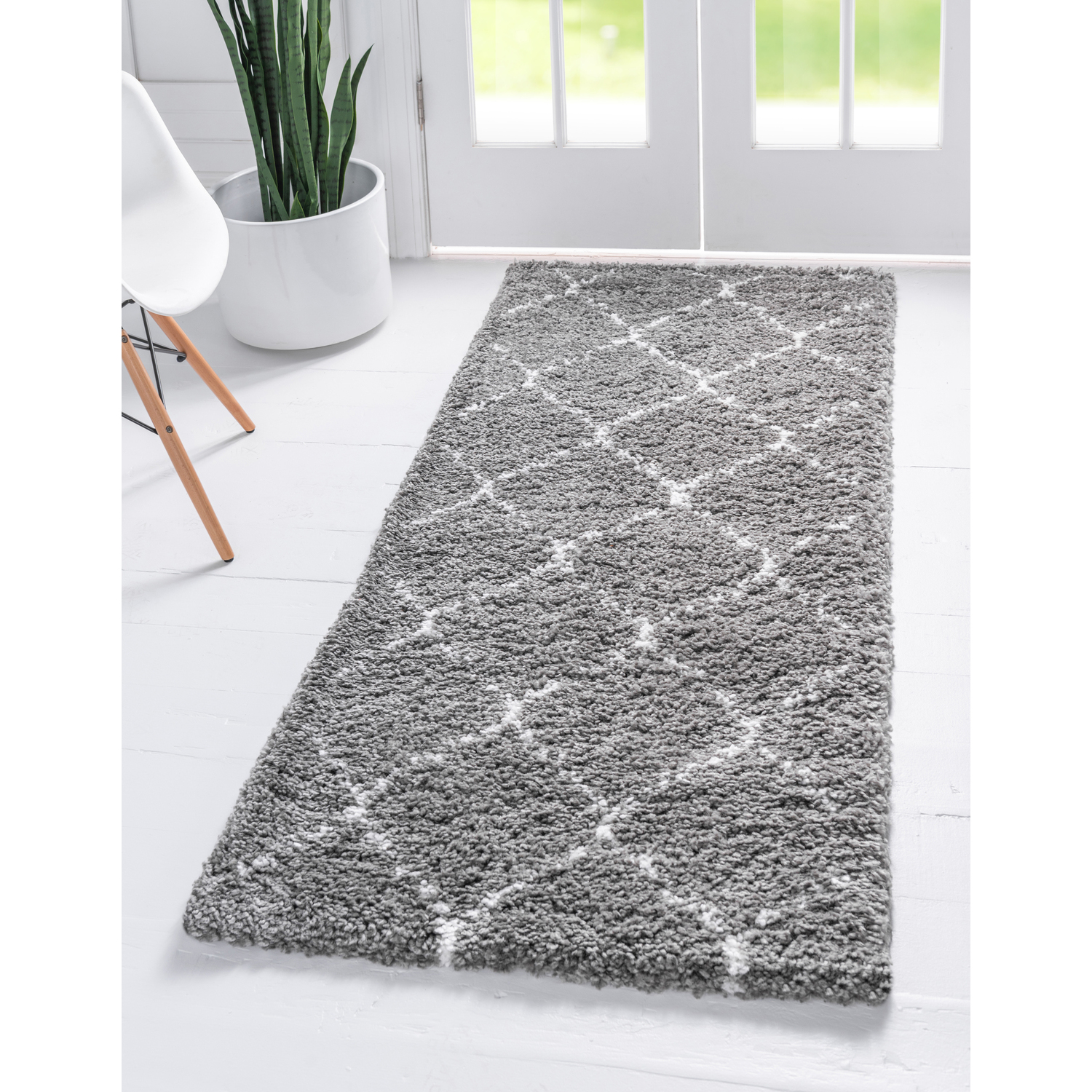 Unique Loom Fractured Rabat Shag Rug in Gray Runner 3144337