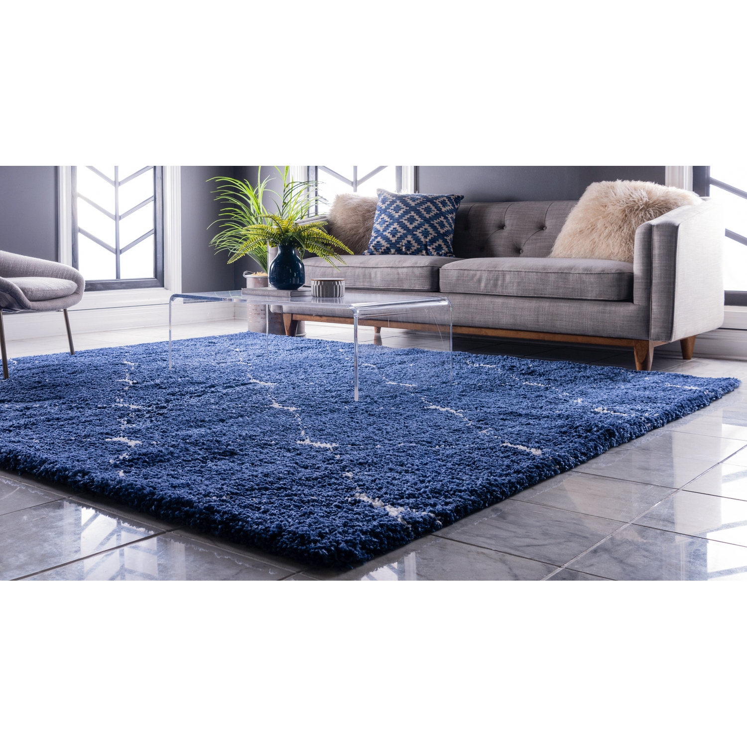 Unique Loom Fractured Rabat Shag Rug in Navy Blue Square 3144343